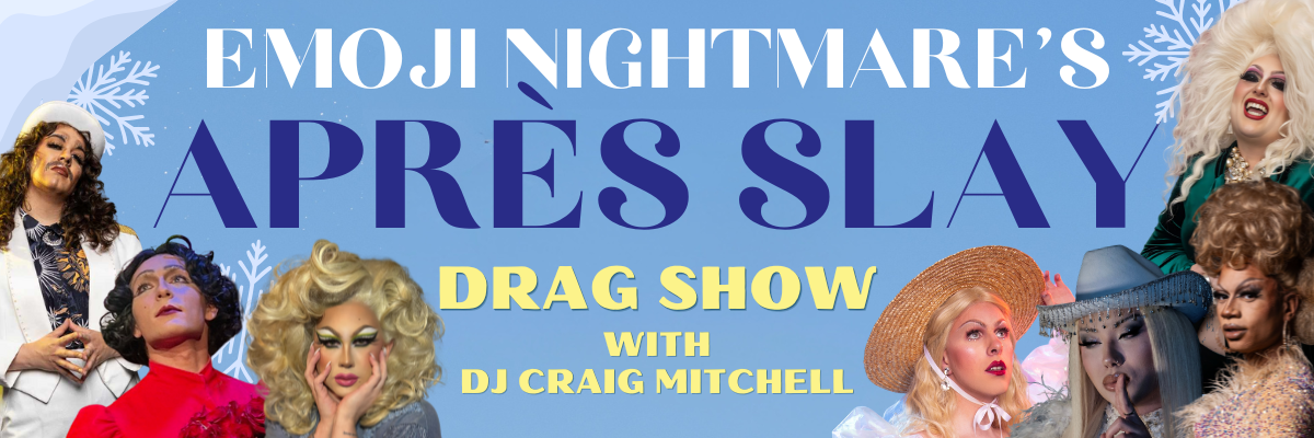 Join us in the Mad River Valley for a high-altitude, high-glam après-ski drag show at Afterthoughts in Waitsfield. Hosted by the one and only Emoji Nightmare, this night serves fierce performances, winter realness, and enough heat to melt the snow off Mount Ellen.